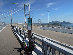 因島大橋はしまなみ唯一の上下二段に国道と原付き・自転車道が分かれます 。 向島へ13:50 |