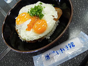 お店のおねえさんに進められたのが、ご当地B級グルメ 『焼豚玉子飯』 この後、今日の宿泊を大三島に決め、料理の美味しそうなお値打ちそうな宿に電話をする。 なんでも昨日島のお祭りで、「今日は宿お休みします」とのことで、宿が取れたのが民宿 珈里葡 さん |