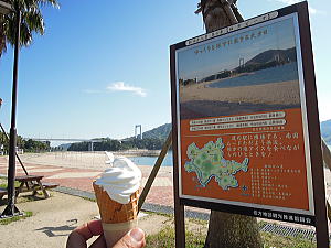 南国ムードな伯方島の道の駅『伯方S・Cターミナル』で甘みを補給 14:45 甘いのか塩っぱいのか? 『伯方の塩ソフト』 |