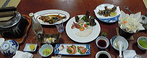 民宿 珈里葡 さんに宿泊です 宿泊プランは2食付きで料理が違います 6500円(税別) 8500円(税別) 10500円(税別) オコゼの唐揚げとか食べたかったし一人部屋なので、8500円をお願いしました。 オコゼの刺し身/オコゼの唐揚げ/アコウの煮付け/鱧/タコ/エビ/鮭/サザエのバター焼き/紙鍋/炊き込みごはん/茶碗蒸し/香の物/ 若い時ならいざしらず、チト多すぎました 大広間でのお料理でしたが、ふすまで仕切られ私一人ポツーン。ふすまの向こうでは自転車の方々の会話が弾んでいます。何故?ナゼ? どうも、料理で別けられてしまったようです。宿の都合も在るでしょうからふすまも開けられず・・・残念! 朝食は、8500円の特典として、昨夜のオコゼのエラ部分が味噌汁としてついてきます。 |
